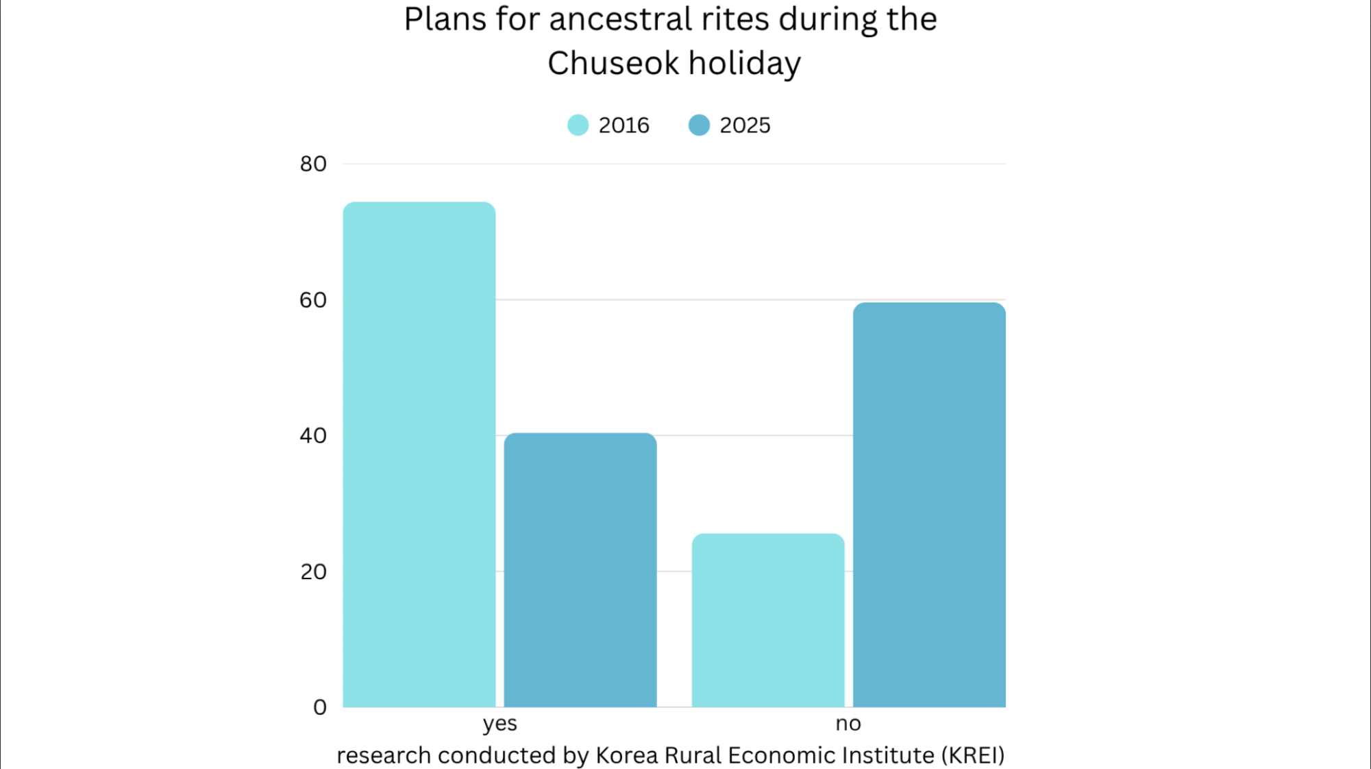 For example, on October 3, a report by the Korea Rural Economic Institute (KREI) revealed that only 40.4% of respondents prepared a charye table (차례상), the traditional ancestral rite held over major holidays like Chuseok. This marks a sharp decline from 74.4% in 2016—a sign of separation from cultural practices and, in turn, from the nation’s shared identity.